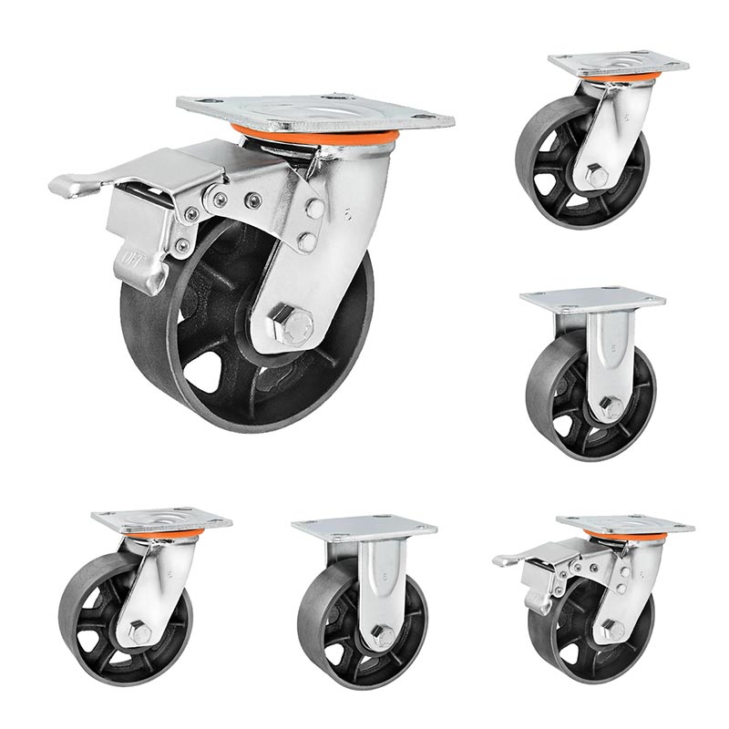 Ruedas de uso pesado de hierro fundido: construidas para una durabilidad extrema, estas ruedas de grado industrial cuentan con una construcción robusta de hierro fundido que soporta cargas pesadas con facilidad. Perfecto para maquinaria, carros y equipos en entornos exigentes. Rodamiento suave, resistente a la corrosión y duradero para un rendimiento superior.
