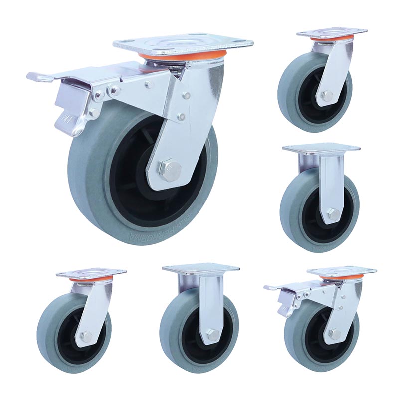 Fabricante y fábrica: Ruedas CMCL® Estilo: Giratorio / Rígido / Giratorio con Freno Opciones de tamaño: 4 pulgadas/5 pulgadas/6 pulgadas/8 pulgadas Capacidad de carga: 300 kg / 350 kg / 400 kg / 450 kg